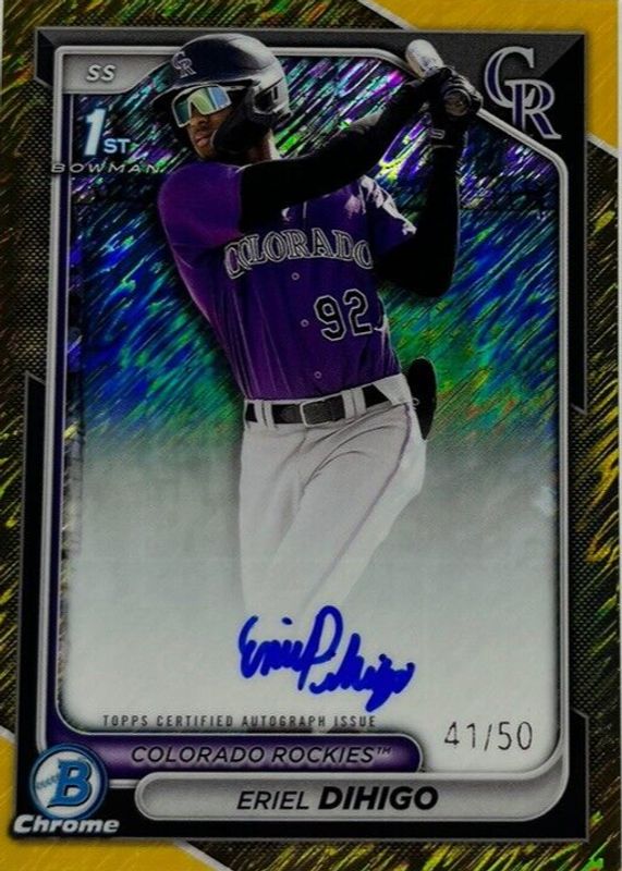 2024 Bowman Chrome Eriel Dihigo 1st Bowman Auto Gold Shimmer /50 Rockies