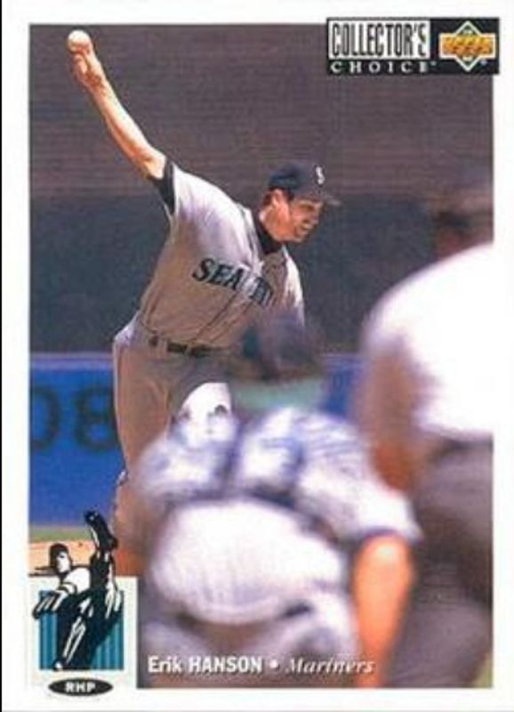 The Erik Hanson 1994 Upper Deck Collector's Choice #124 Base card is 1 of 6 Erik Hanson's card variations in the 1994 Upper Deck Collector's Choice set being tracked by Sports Card Investor, including #597 Base, #124 Gold Signatures, #597 Gold Signatures, #124 Silver Signatures, and #597 Silver Signatures.