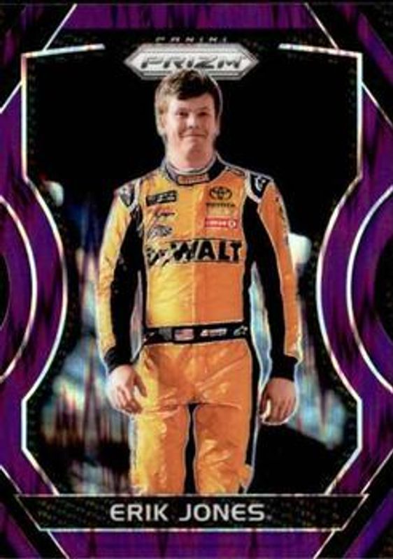 The Erik Jones 2018 Prizm NASCAR #7 Purple Flash card is 1 of 35 Erik Jones' card variations in the 2018 Prizm NASCAR set being tracked by Sports Card Investor, including Base, Camo, Red White Blue, Silver, and Green /149.