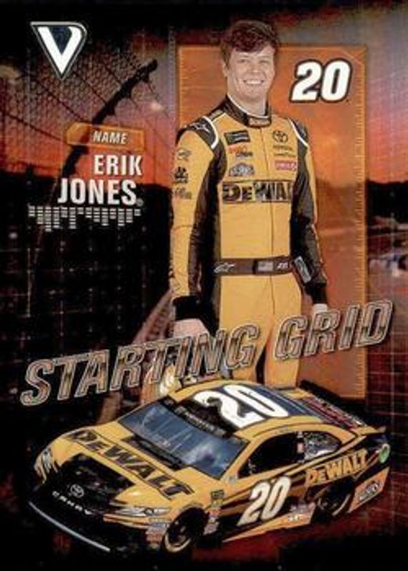 The Erik Jones 2018 Victory Lane NASCAR #S14 Starting Grid card is 1 of 48 Erik Jones' card variations in the 2018 Victory Lane NASCAR set being tracked by Sports Card Investor, including Base, Silver, Gold /99, Red /49, and Blue /25.