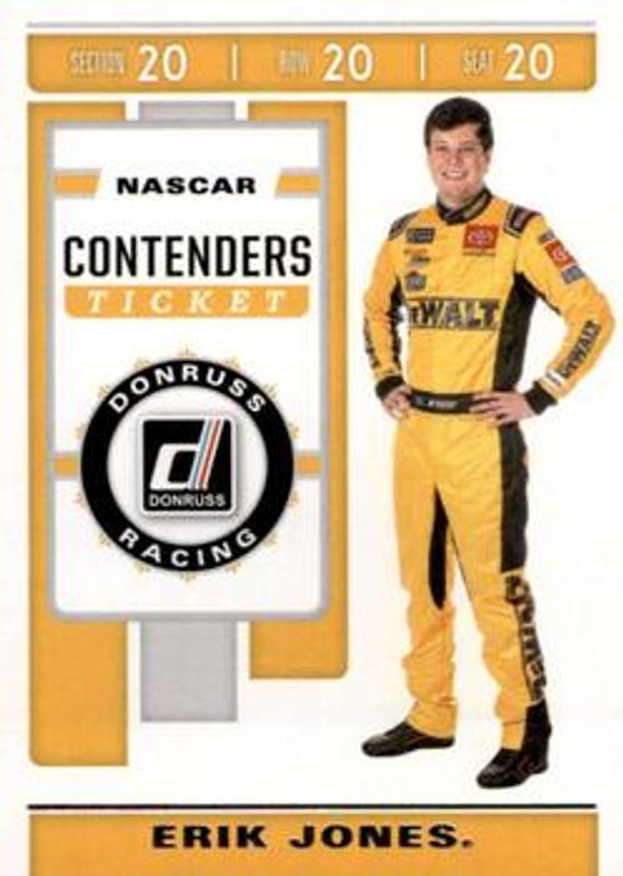 Erik Jones 2020 Donruss NASCAR #C16 Contenders Ticket RAW Price Guide