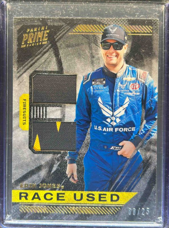 Erik Jones 2023 Panini Prime #RUD-EJO Race Used Duals Firesuits - Holo Gold /25 RAW Price Guide