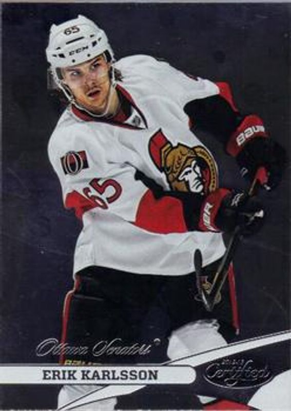 The Erik Karlsson 2012 Certified #65 Base /999 card is 1 of 20 Erik Karlsson's card variations in the 2012 Certified set being tracked by Sports Card Investor, including Mirror Red /100, Mirror Hot Box /75, Mirror Blue /50, Mirror Gold /25, and Mirror Emerald /5.