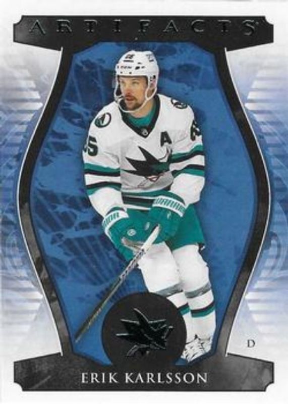 The Erik Karlsson 2023 Upper Deck Artifacts #73 Turquoise card is 1 of 24 Erik Karlsson's card variations in the 2023 Upper Deck Artifacts set being tracked by Sports Card Investor, including Base /999, Ruby /499, Copper /299, Royal Blue /199, and Emerald /99.