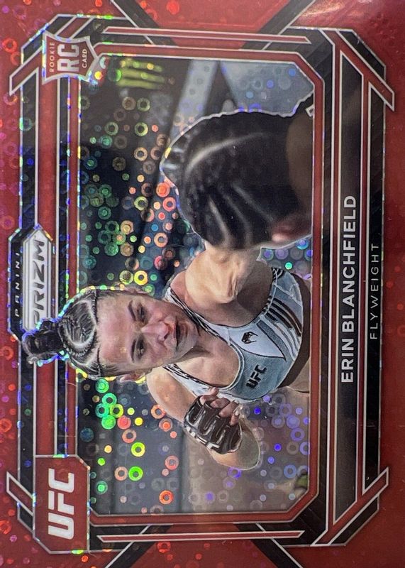 The Erin Blanchfield 2023 Prizm UFC #12 Under Card Red /99 Rookie card in Raw condition has not changed in price in the last 30 days and was last sold for $4.25 .