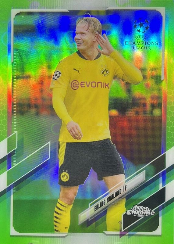 Erling Haaland 2020 Topps Chrome UEFA Champions League #49 Neon Green Bubbles Refractor RAW Price Guide