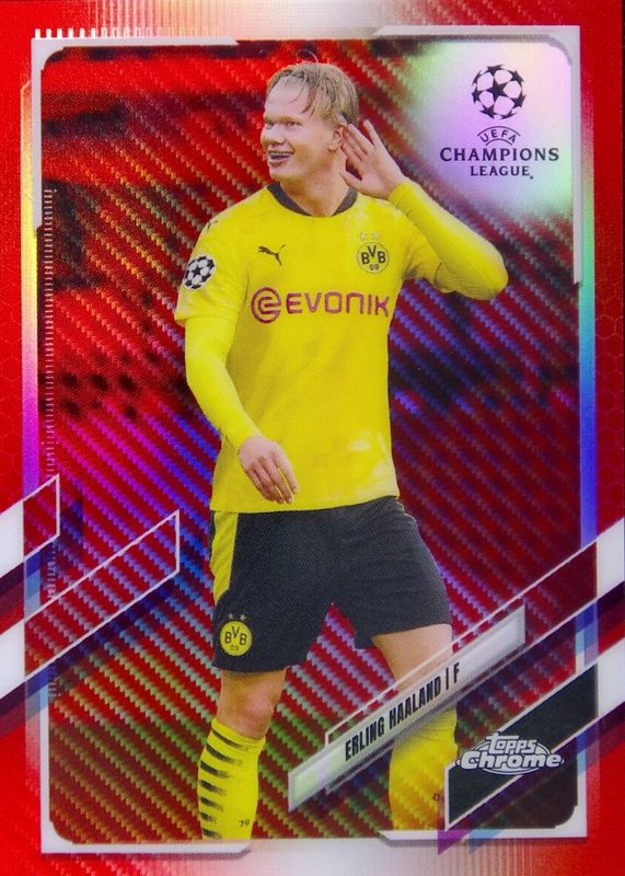 Erling Haaland 2020 Topps Chrome UEFA Champions League #49 Red Carbon Fiber Refractor RAW Price Guide