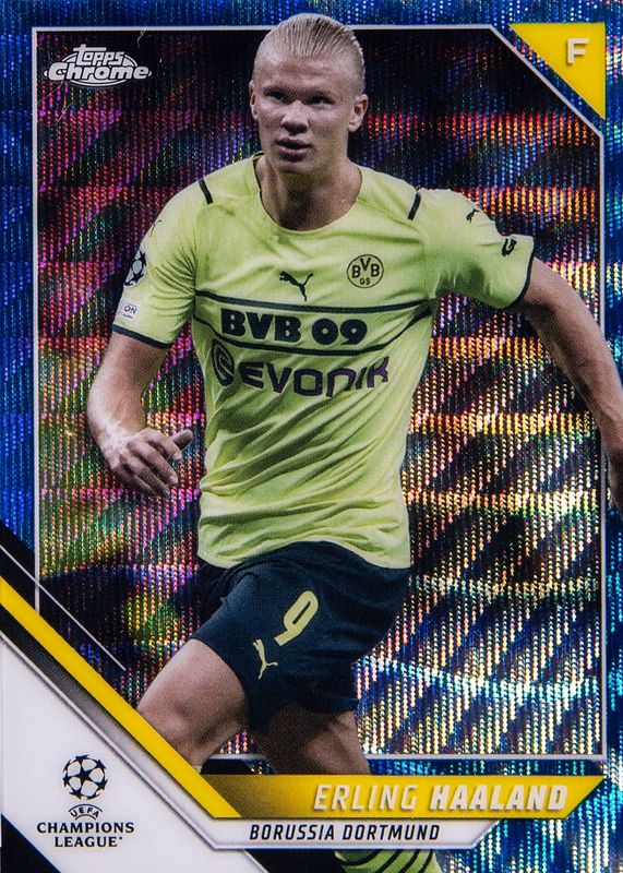 Best Prices Available For Sale of Erling Haaland 2021 Topps Chrome UEFA Champions League #200 Blue Wave Refractor /75