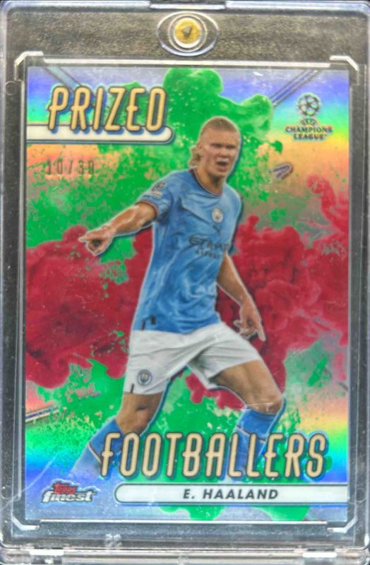 Erling Haaland 2022 Topps Finest UEFA Club Competitions #PFF-15 Prized Footballers Fusion Green RedABC - Red /30 RAW Price Guide