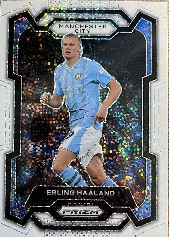 The Erling Haaland 2023 Prizm Premier League #3 White Sparkle /(SSP) card in Raw condition has not changed in price in the last 30 days and was last sold for $100.97 .