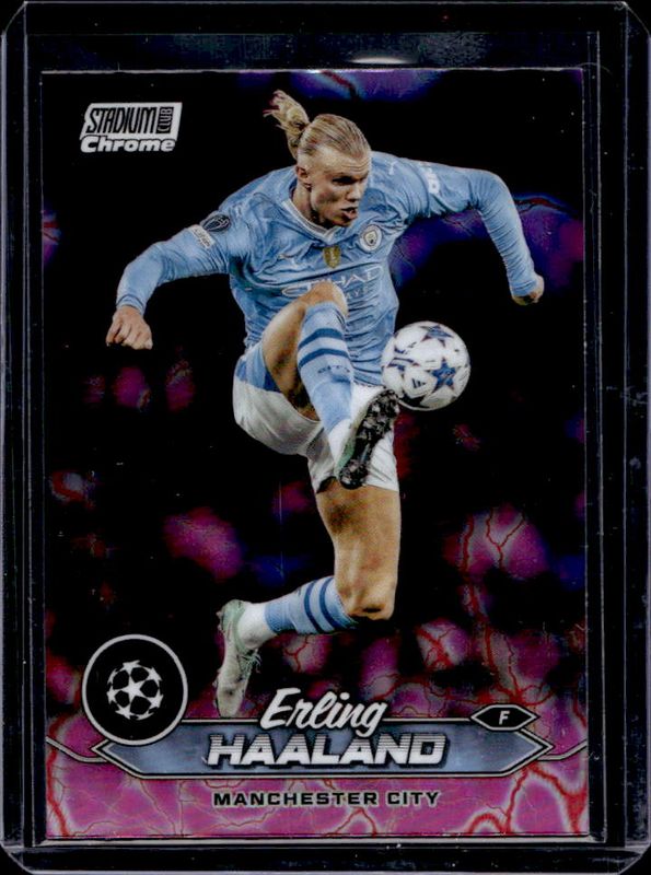 Erling Haaland 2023 Topps Stadium Club Chrome UEFA Champions League #70 Pink Red Electric Charge Refractor RAW Price Guide