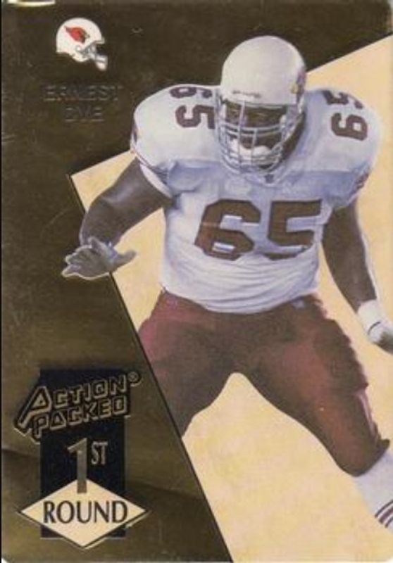 The Ernest Dye 1993 Action Packed #179 Base Rookie card is 1 of 3 Ernest Dye's card variations in the 1993 Action Packed set being tracked by Sports Card Investor, including Mint /500, and 24K Gold.