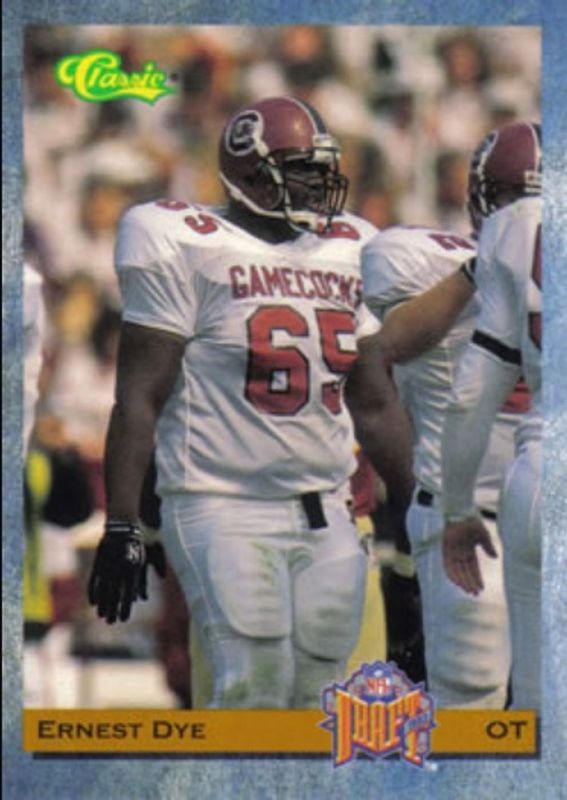 The Ernest Dye 1993 Classic #15 Base Rookie card is 1 of 3 Ernest Dye's card variations in the 1993 Classic set being tracked by Sports Card Investor, including Gold, and Autographs.