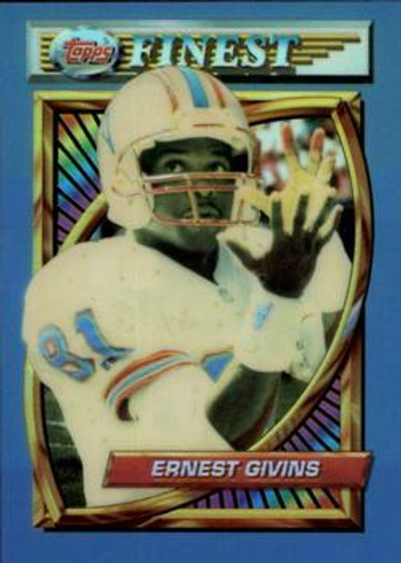 The Ernest Givins 1994 Topps Finest #144 Base card is 1 of 2 Ernest Givins' card variations in the 1994 Topps Finest set being tracked by Sports Card Investor, including Refractors.