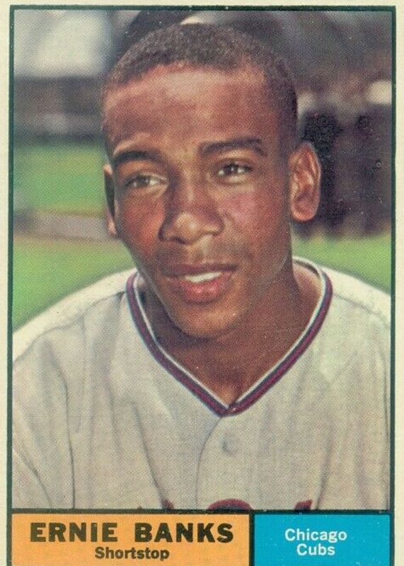 This card is 1 of 4 Ernie Banks' card variations in the 1961 Topps set being tracked by Sports Card Investor, including #485 Base, #575 Base, and Stamps.
