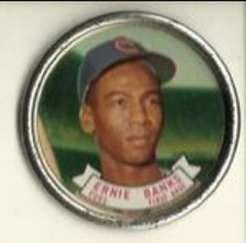 The Ernie Banks 1964 Topps #42 Coins card is 1 of 2 Ernie Banks' card variations in the 1964 Topps set being tracked by Sports Card Investor, including Base.