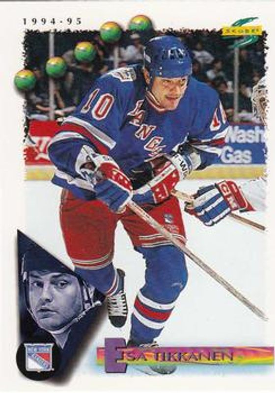 The Esa Tikkanen 1994 Score #136 Base card is 1 of 4 Esa Tikkanen's card variations in the 1994 Score set being tracked by Sports Card Investor, including Gold Line, Gold Line - Punched, and Platinum.