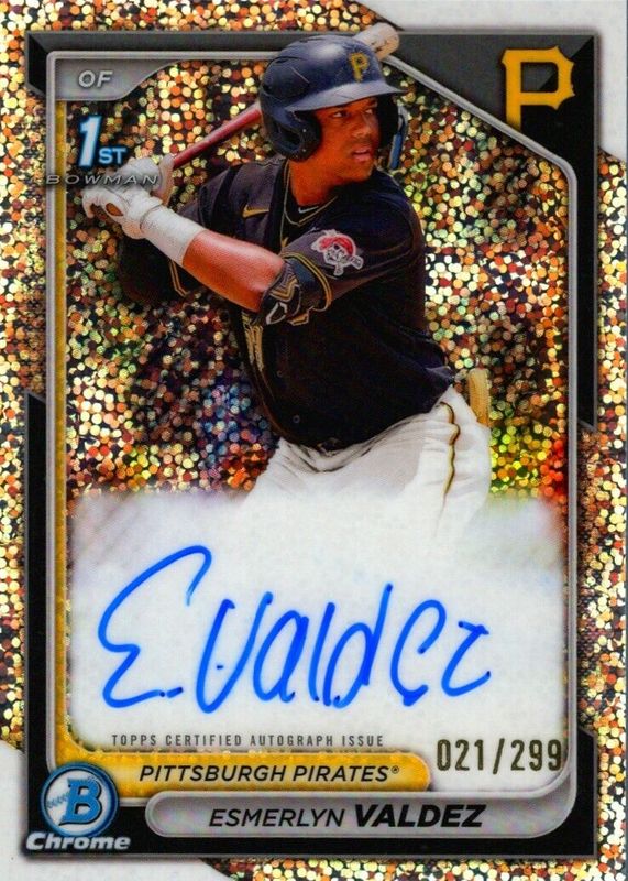 ESMERLYN VALDEZ - 2024 Bowman 1st Chrome SPECKLE Refractor #/299, Auto (Pirates)