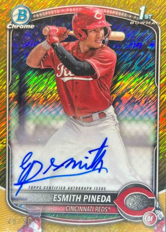 Esmith Pineda 2025 Bowman #CPA-EP Chrome Prospect Auto - Gold Shimmer Refractor /50 (1st) RAW Price Guide