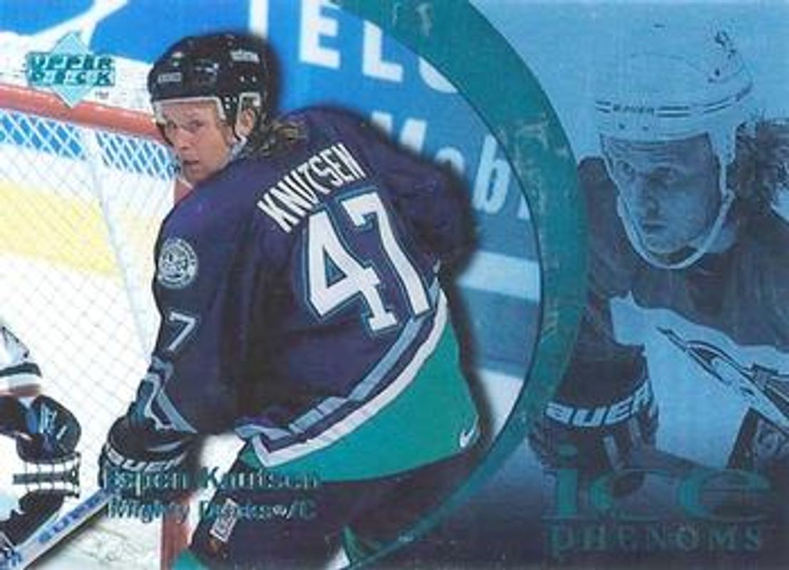 The Espen Knutsen 1997 Upper Deck Ice #44 Parallel Rookie card is 1 of 3 Espen Knutsen's card variations in the 1997 Upper Deck Ice set being tracked by Sports Card Investor, including Base, and Power Shift.