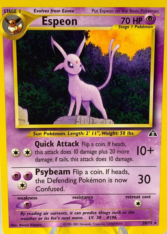 Espeon 2001 Neo Discovery #20/75 Unlimited RAW TCG (NEAR MINT) Price Guide