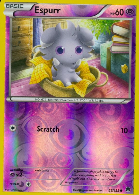 Pokémon TCG Espurr 58/122 X&Y BREAKPoint Reverse Holo Rare English 2016 NM/LP