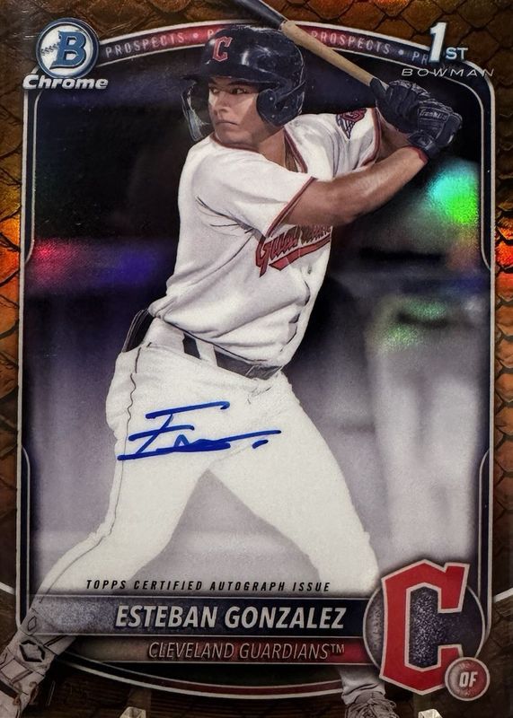 Esteban Gonzalez 2025 Bowman #CPA-EGO Chrome Prospect Auto - Reptilian Orange Refractor /25 (1st) RAW Price Guide