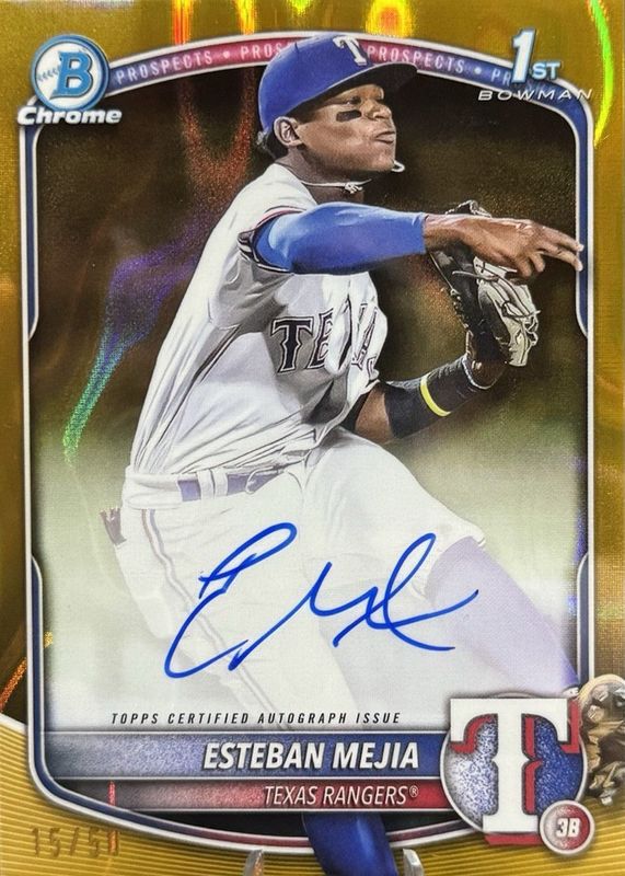Esteban Mejia 2025 Bowman Chrome #CPAEM gold lava 1st RC auto /50 Texas Rangers
