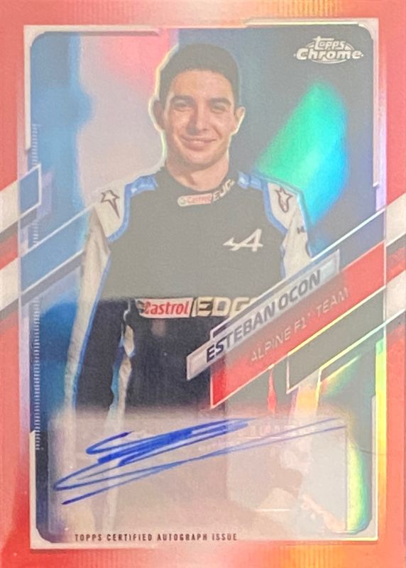 Esteban Ocon 2021 Topps Chrome Formula 1 #CA-EO Autographs - Red Refractor /5 RAW Price Guide