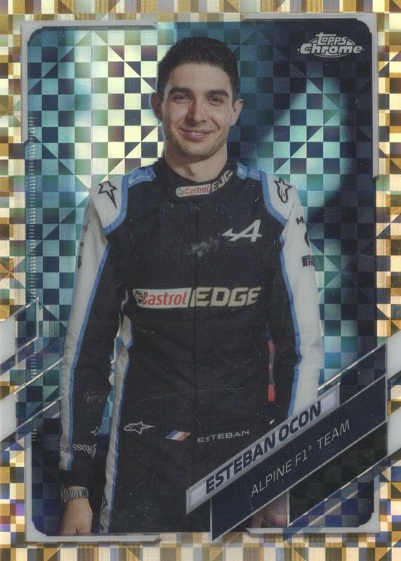 2021 Topps Chrome F1 Esteban Ocon Gold Checker Flag Refractor #/50