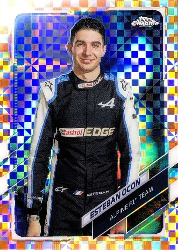 2021 Topps Chrome Formula F1 #10 Esteban Ocon Orange Checker Flag Refractor /25