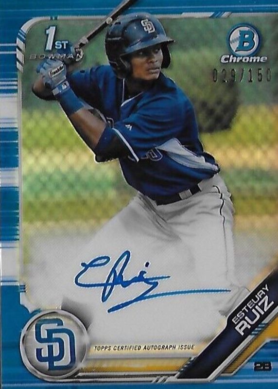 Best Prices Available For Sale of Esteury Ruiz 2019 Bowman #CPA-ER Chrome Prospect Auto - Blue Refractor /150 (1st)
