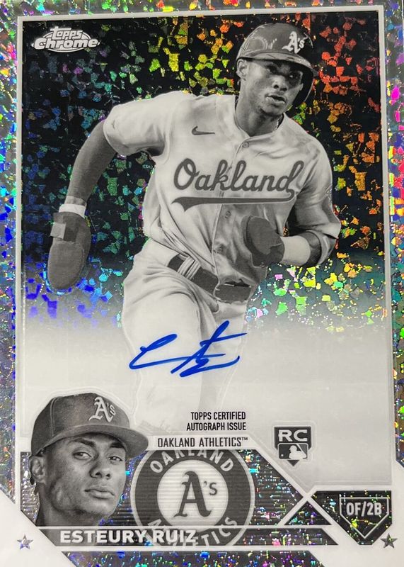 Auctions Ending Soon for Esteury Ruiz 2023 Topps Chrome #RA-ERU Rookie Autographs - Black & White Mini-Diamond Refractor RAW