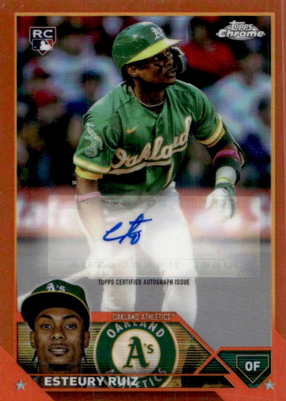 2023 Topps Chrome Update Esteury Ruiz Orange Refractor RC Auto 17/25 - A's
