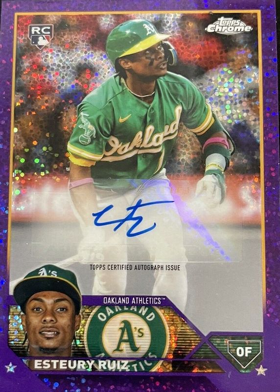 Auctions Ending Soon for Esteury Ruiz 2023 Topps Chrome Update #AC-ER Autographs - Purple Speckle Refractor /299 Rookie RAW