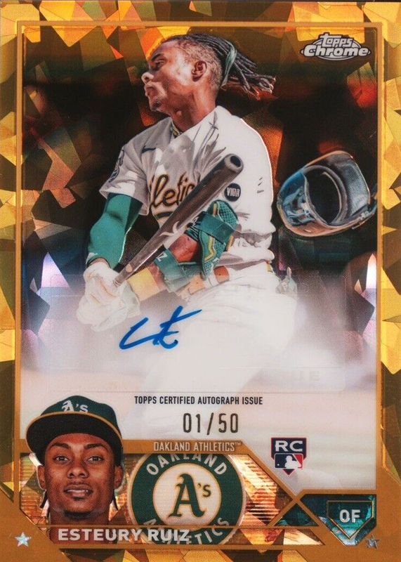 Esteury Ruiz 2023 Topps Chrome Update Sapphire Gold Rookie Auto /50 Athletics