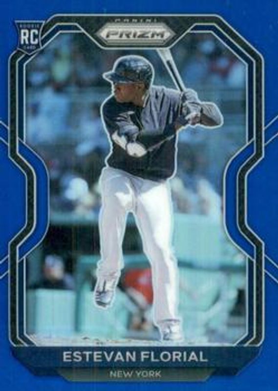 The Estevan Florial 2021 Prizm #85 Blue Rookie card is 1 of 69 Estevan Florial's card variations in the 2021 Prizm set being tracked by Sports Card Investor, including Base, Blue Velocity, Carolina Blue, Cosmic Haze, and Giraffe.