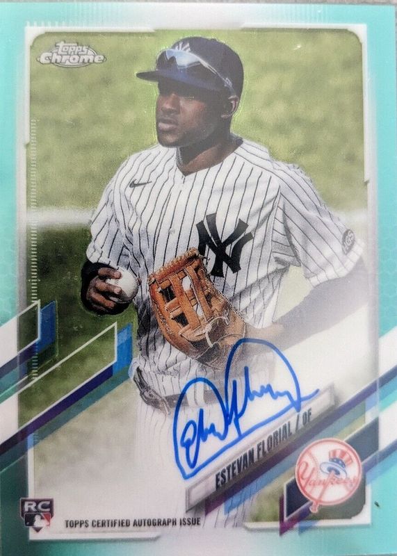 2021 Topps Chrome Estevan Florial Rookie Auto RC Aqua Refractor #115/199 Yankees