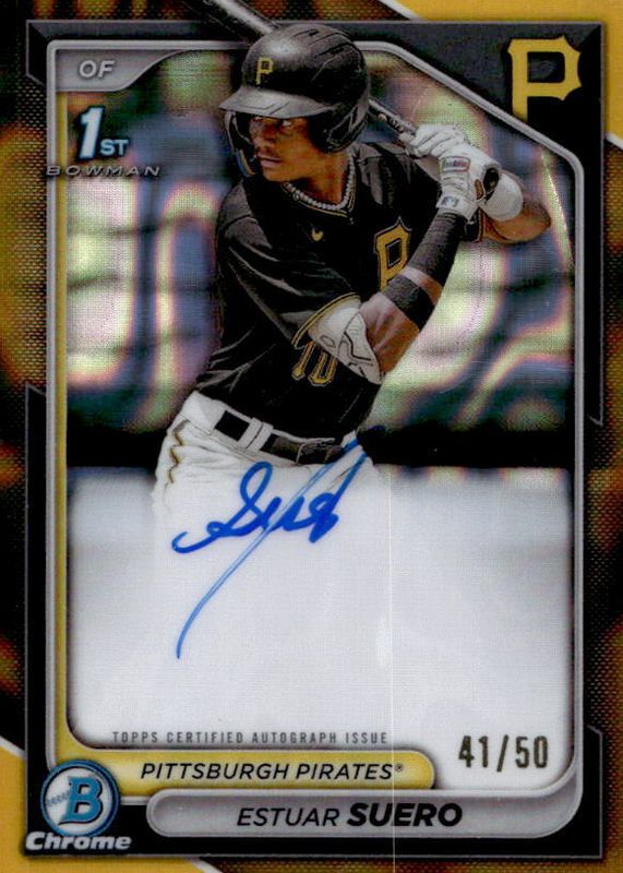 2024 Bowman Chrome Estuar Suero HTA Gold Lava Refractor 1st Auto #41/50 Pirates