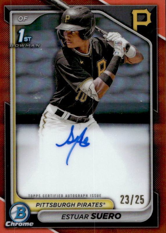 2024 Bowman Chrome Estuar Suero 1st Prospect Orange Refractor Auto #/25 Pirates