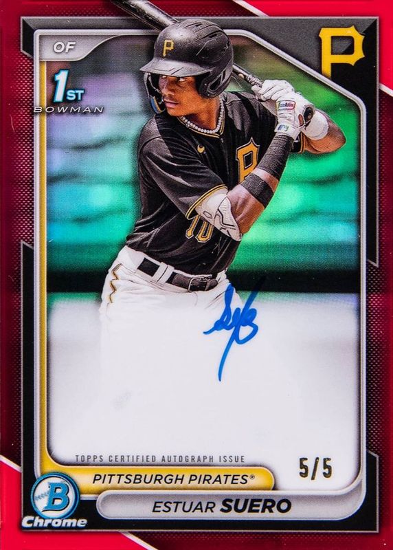 Estuar Suero 2024 Bowman #CPA-ES Chrome Prospect Auto - Red Refractor /5 (1st) RAW Price Guide