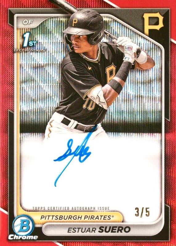 Estuar Suero 2024 Bowman #CPA-ES Chrome Prospect Auto - Red Wave Refractor /5 (1st) RAW Price Guide