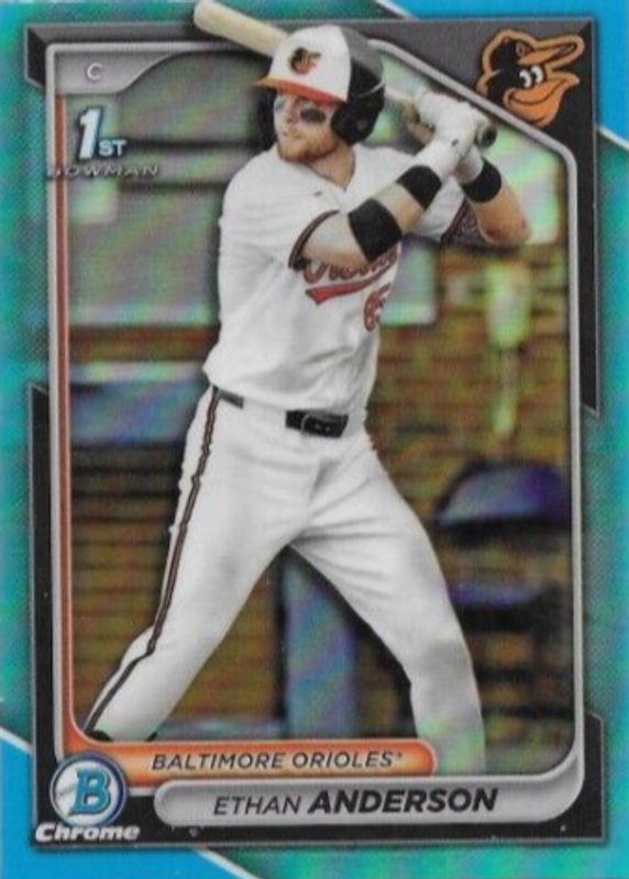 The Ethan Anderson 2024 Bowman Draft #BDC-79 Chrome - Sky Blue Refractor (1st) card in Raw condition has moved up $0.26 (+26.3%) in the last 30 days and was last sold for $1.25 .