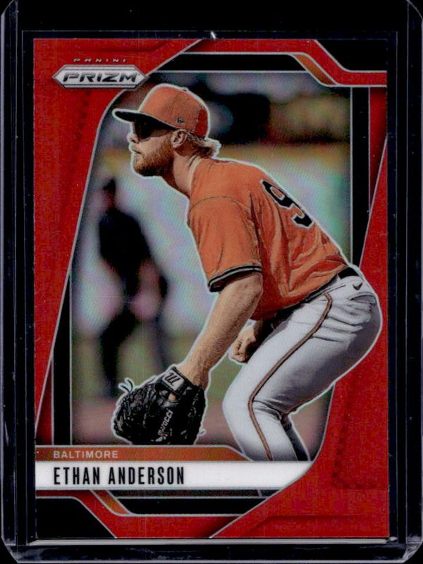The Ethan Anderson 2025 Prizm #65 Red /299 card is 1 of 48 Ethan Anderson's card variations in the 2025 Prizm set being tracked by Sports Card Investor, including Base, Blue Ice, Glitter, Green, and Green Ice.