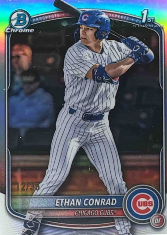 The Ethan Conrad 2025 Bowman Draft #BDC-17 Chrome - Bowman Logofractor /35 (1st) card in Raw condition has not changed in price in the last 30 days and was last sold for $42.00 .