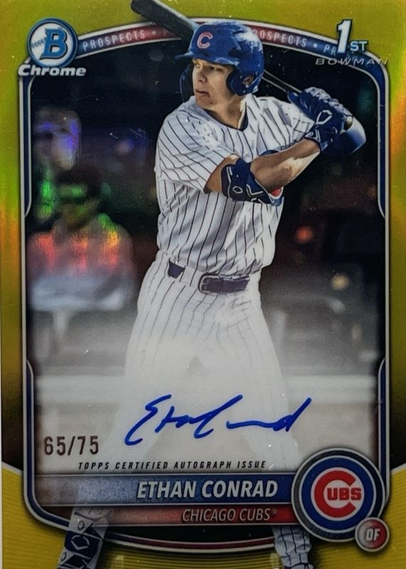 2025 Bowman Draft Ethan Conrad 1st Auto Yellow Refractor /75 Cubs Chrome Card