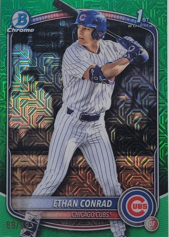 Best Prices Available For Sale of Ethan Conrad 2025 Bowman Draft Mega Box #BDC-17 Chrome - Green Mega Refractor /99 (1st)