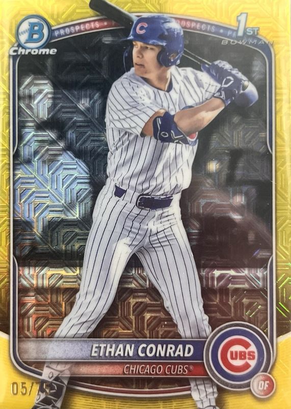 2025 Bowman Draft Mega Ethan Conrad 1st Bowman Yellow Mojo Refractor /75 Cubs