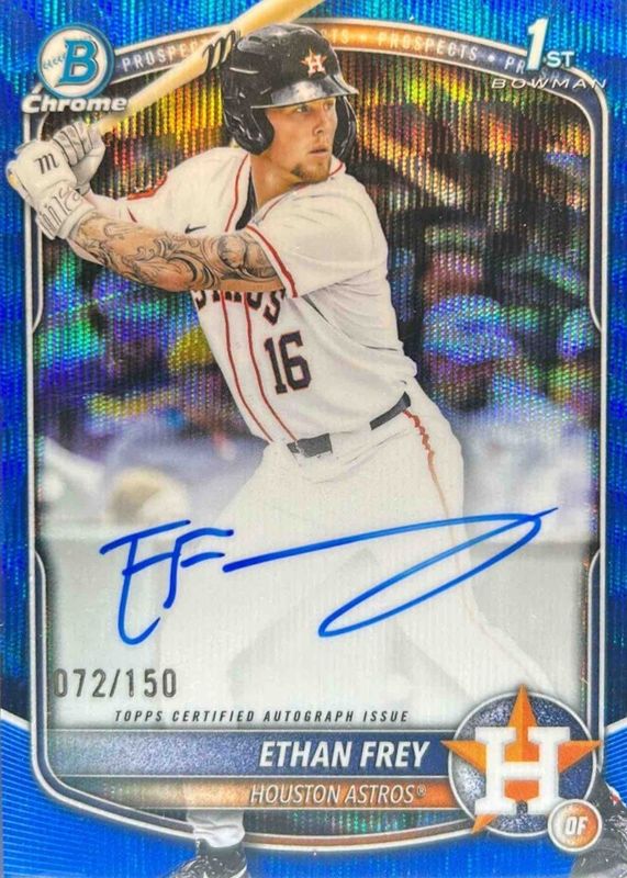 2025 Bowman Draft Ethan Frey Chrome Auto Blue Wave Refractor 1st #/150 Astros