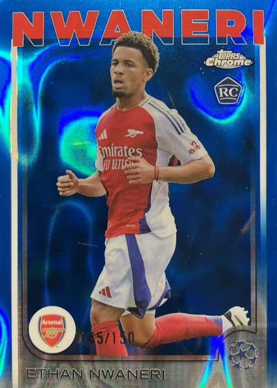 Ethan Nwaneri 2024-25 Topps Chrome UEFA Blue Lava Refractor /150 RC #158